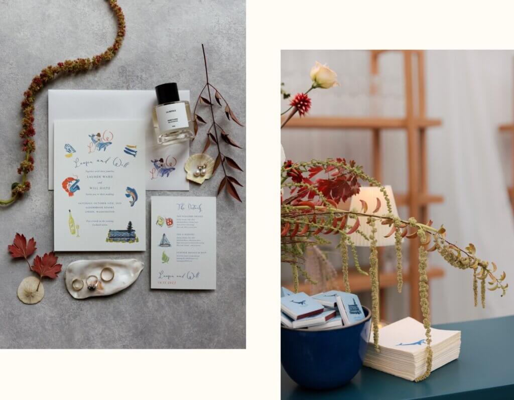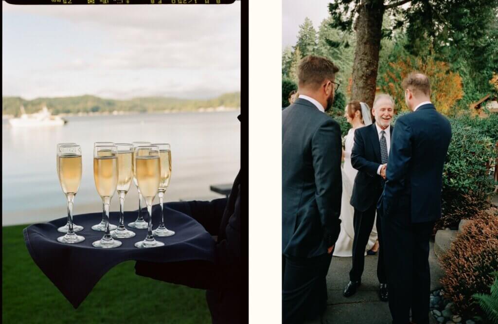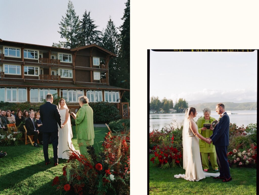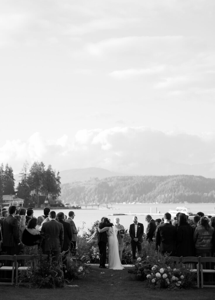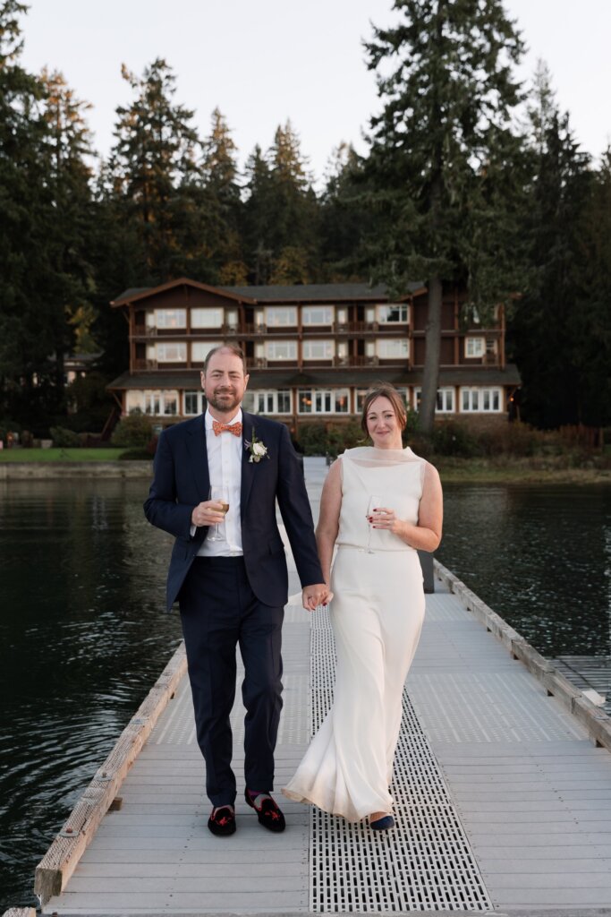 On the shores of Hood Canal lies one of Washington’s most coveted resort wedding venues, Alderbrook Resort and Spa. Lauren and Will reached out with their planning team in tact with A Renee Weddings and a vision that felt both nautical and eclectic, and I knew it would be a wedding I looked forward to all year. Whimsical illustrations by Ten Story Stationery and some of the most beautiful florals I’ve seen by Little Joy Fleurs anchored the playful creative decisions made by the couple, while wishbone chairs and a stunning navy blue back bar added elegant structure to the design. Intentional hints of plaid and stripes in their linens gave a nod to the feeling of a crisp Autumn on the water.