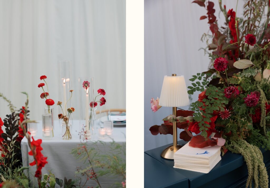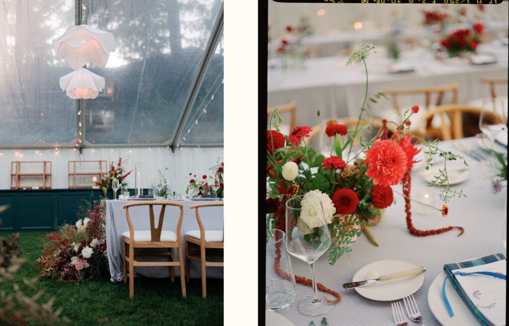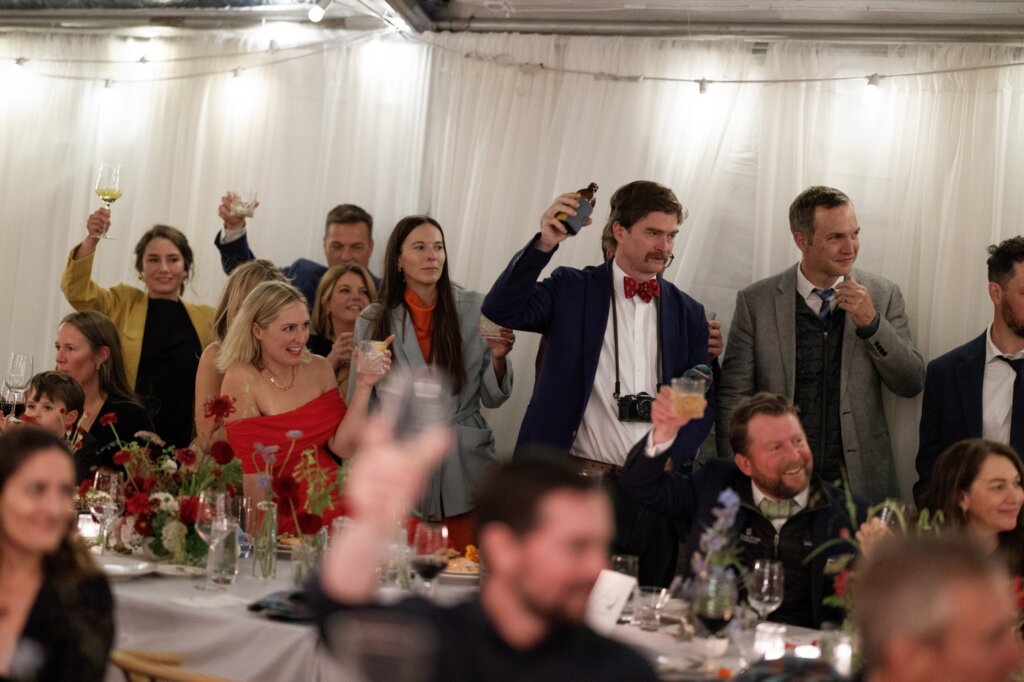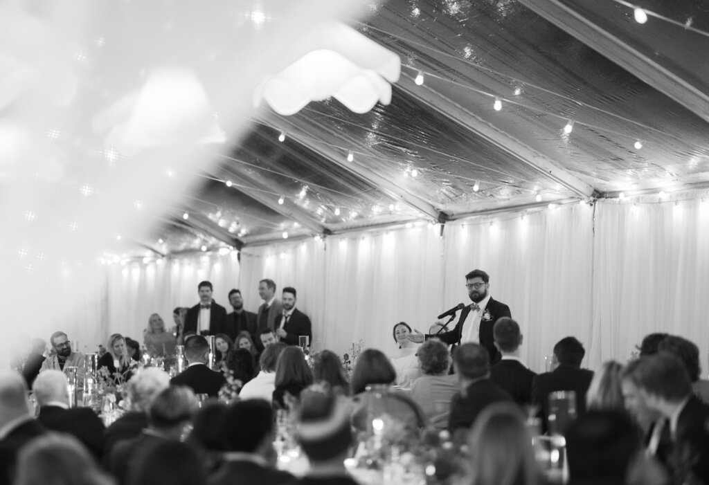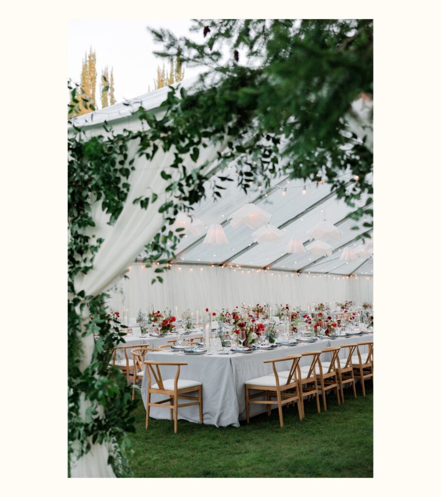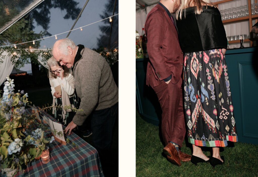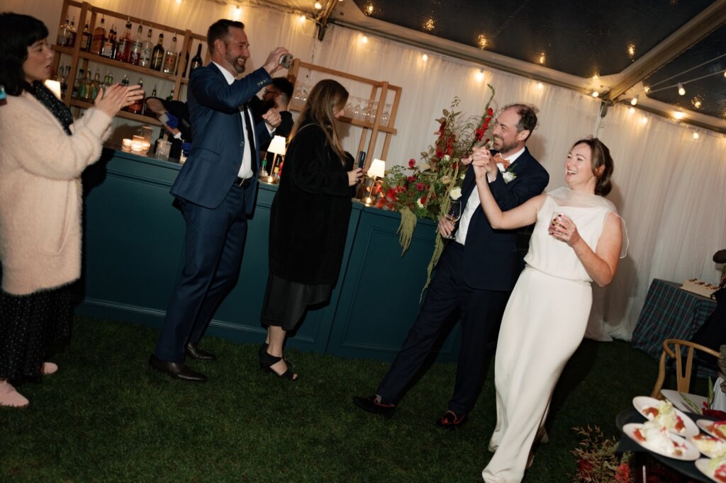 Entering into their draped tented reception felt absolutely transformative. As the October chill started to roll in after a sun drenched (how lucky!) ceremony and cocktail hour, guests cozied up around candlelit tables, listened to the live saxophonist, and leaned in over sentimental speeches.